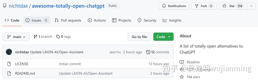 项目作者 nichtdax 整理了 9 个开源的 ChatGPT 平替项目。接下来会一一介绍。
