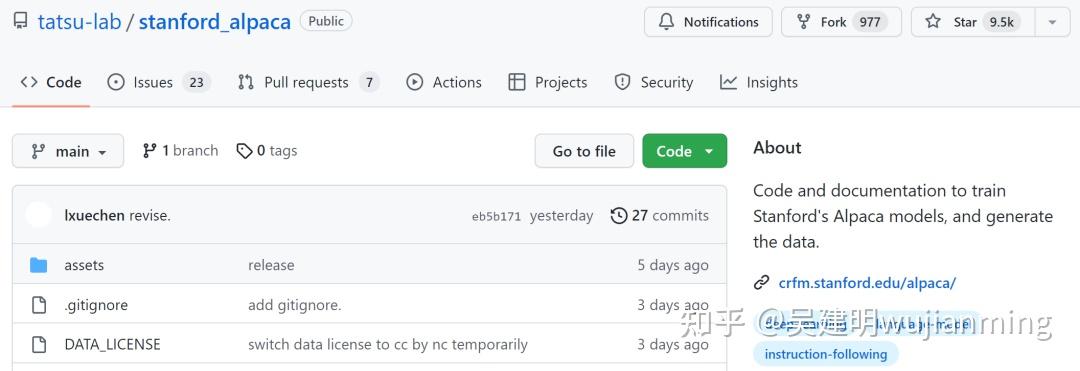 第六个项目是「stanford_alpaca」,它旨在建立和共享一个指令遵循的 LLaMA 模型。该 repo 包含了用于微调模型的 52k 数据、用于生成数据的代码以及用于微调模型的代码。