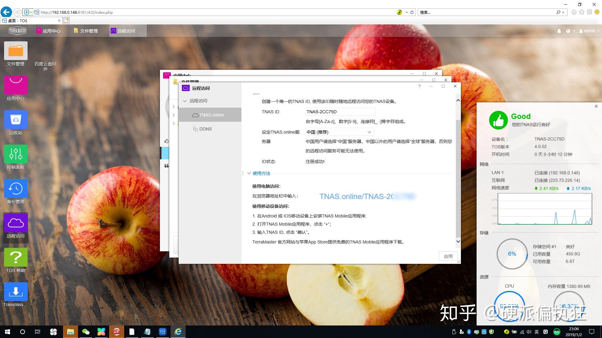 Nas如果仅仅能局域网的话,意义就不大了。看着铁威马的原因主要就是远程控制以及外网的功能,白裙的quickconnet虽然不错,但是也是有限制的。铁威马就省心了,根本不需要额外的应用,也不需要折腾外网穿透什么的,直接可以通过页面访问Tnas.line就可以进行访问,登录后就是TOS的页面,远程的操作、控制、权限均和局域网的一样。