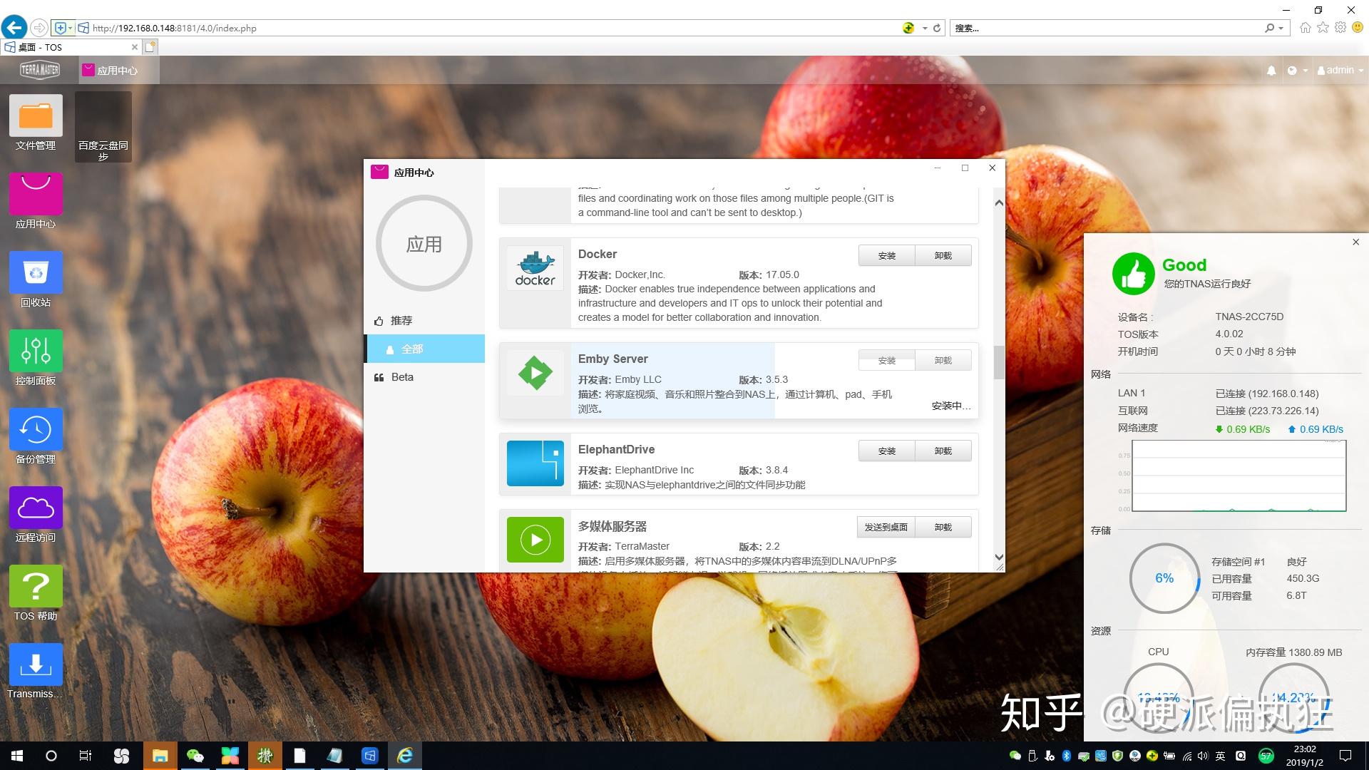 TOS系统和日常的Windows很像,减少了操作的难度。铁威马的系统自带数十个应用,通过应用可以实现更多的功能。
