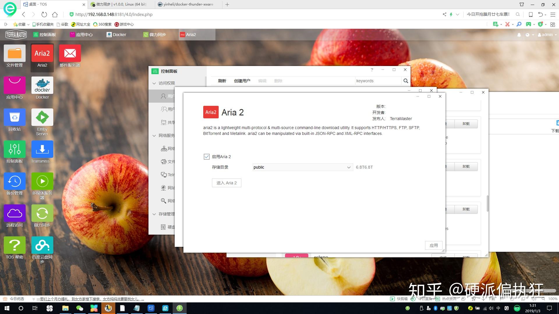 如果要磁力链下载,就需要Aria 2。有意思的是,这个软件才是真正让我放弃黑群辉的原因。因为在黑群辉上面配置这东西,我看了差不多十篇文章才勉强能用。但是讽刺的是铁威马的TOS完完全全就是图形化,按照传统电脑的安装方式操作。