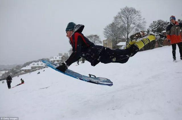 不少学校因此停课,于是年轻人们出门玩起了滑雪。