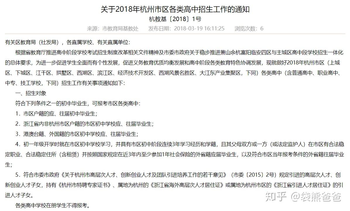 简单说,能报考市区高中的,主要是:1、户籍学籍在杭州市区,2、学籍在杭州市区(2-5点均是这个意思),3、户籍在杭州市区但学籍不在的“个别生”(需另申请)。