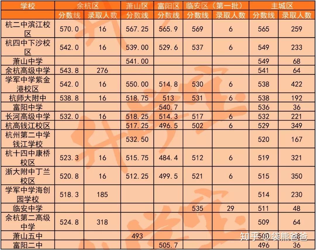 但是由于各校在不同区域有专门的招生计划,分数线也分区域划定,在同一所会出现不同的分数线。比如杭二(滨江),向市区招收中考生259人,所以分数线是565分;面向临安区招收中考生6人,分数线是569分,高出好几道选择题的难度。