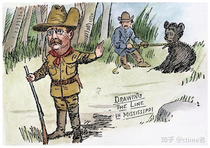1902年西奥多·罗斯福去密西西比州公干,当地主人为他安排了一次猎熊之旅。但这次狩猎很不走运,整整三天猎人们一无所获。到了第四天,向导和猎狗终于发现目标——一头小黑熊。在猎狗和猎人的围攻下小黑熊奄奄一息。向导请来了罗斯福,让他射杀这只已被团团围住的黑熊,罗斯福断然拒绝。他说:“这可不是真正的猎家所为。”后来漫画家克里夫·贝瑞曼将此事画成漫画,发表在《华盛顿邮报》上,举国皆知。自此之后,公仔熊有了一个真正的名字“Teddy Bear”( 取自罗斯福昵称泰迪 )。Steiff Teddy Bears很快风靡全美各地,更由此走向全世界。