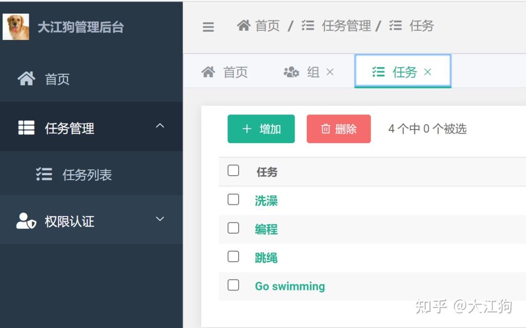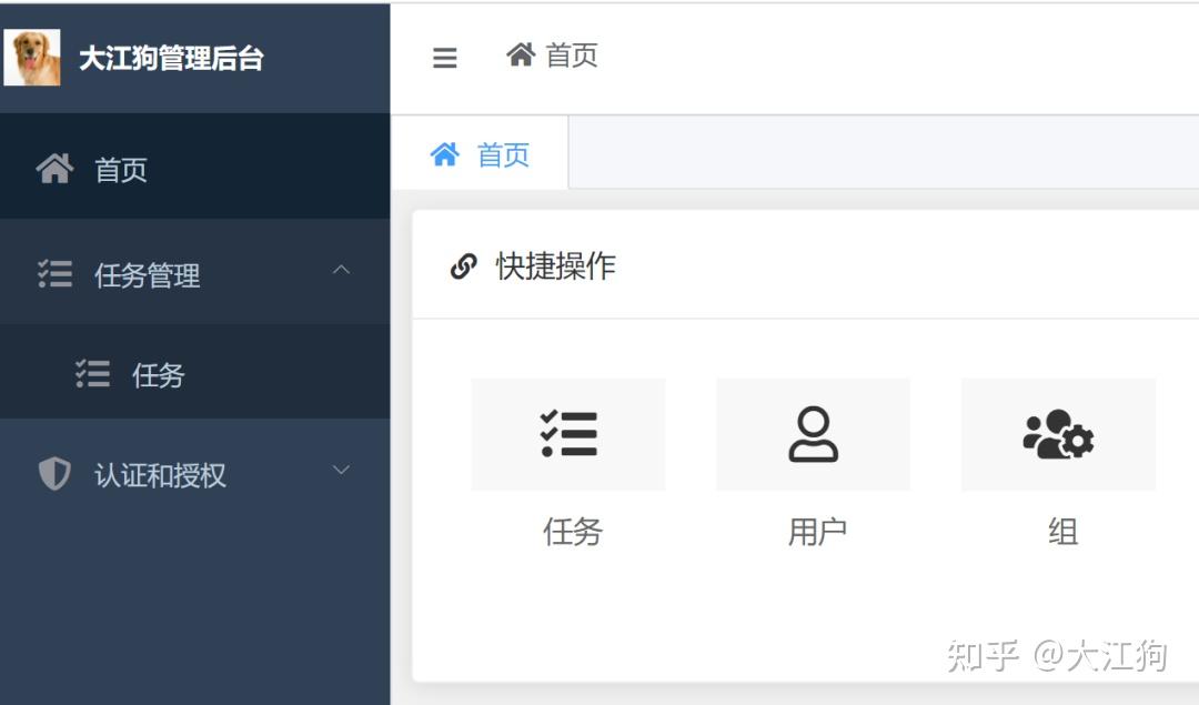 我们的模板也很简单,使用了boostrap4的admin lte风格的卡片展示用户总数和任务总数。