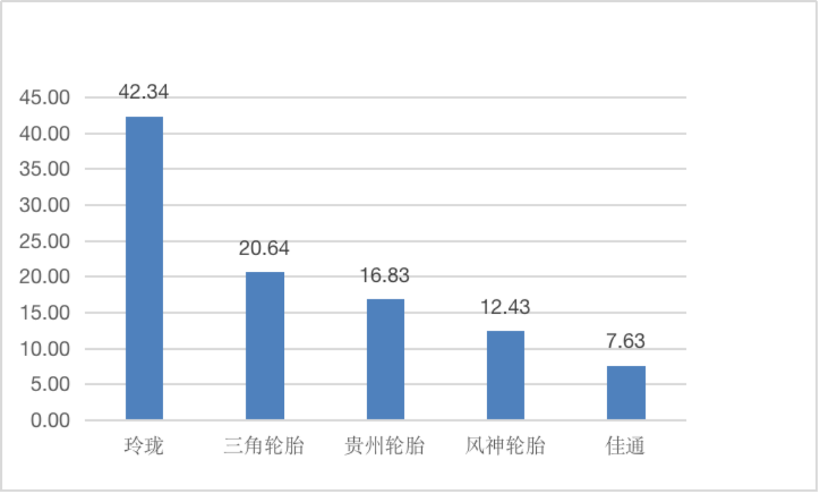 图1 “轮胎”赛道企业品牌优势值(100分制)