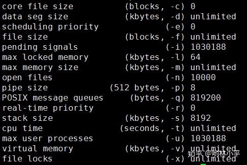 用指令ulimit -a来查看当前用户的各项limit限制:
