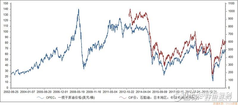 (2)FOB 中东:亚洲的石脑油主要是从中东进口,每日 FOB 中东石脑油价格全部使用 CFR 日本减去运费倒推计算得到,也就是说 CFR 日本和 FOB 中东之间只是存在运费之间的差异。