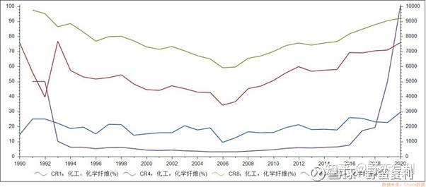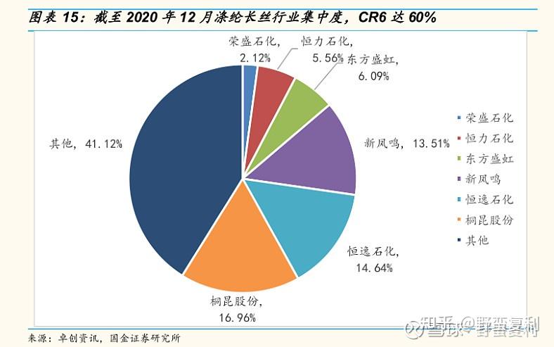 涤纶长丝正经历从普通丝逐渐向高端差异化丝升级,但受制于核心设备卷绕头的产能限制,高端卷绕头是涤纶长丝生产的核心部件,其产能主要集中在德国巴马格及日本 TMT 两家公司手中,两者每年生产的卷绕头仅能对应每年约 250 万吨左右的产能增量,目前这两家公司在2023 年及之前的出货订单已经被包括 恒逸石化 、 桐昆股份 及 新凤鸣 在内的企业买断,因此极大地限制了未来几年涤纶长丝产能的扩张,这意味着小企业扩产将非常困难。因为我们预计 2021 年新扩建产能计划中仅部分能投产,但长期来看,行业集中度将持续向龙头企业集中,长丝产品议价权逐渐由龙头企业掌控。相比于分散化特征明显的下游纺织企业,长丝企业高集中度特征使其可采取更多有效手段保障自身利益。