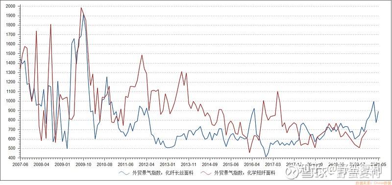 涤纶纤维行业的下游应用于服装、家纺、汽车内饰、产业用纺织品等领域。从下图我们可以看到,涤纶长丝的需求有稳步提升的状态,而涤纶短纤行业,需求增长则不显著。因此我们继续来看涤纶长丝的数据。
