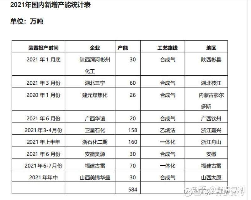 国内乙二醇产能快速提升。今年将有近600万吨/年乙二醇新产能计划投产,其中绝大部分新装置投产时间在上半年。有消息称, 湖北三宁60万吨/年、卫星石化180万吨/年等新增产能将释放, 他们的产品将于5~6月投入市场。另外, 近日新疆40万吨/年荒煤气制乙二醇项目也进入试车阶段,内蒙古建元24万吨/年焦炉气制乙二醇项目正在加紧调试设备,预计5月下旬出产品 。如果这些新增产能如期兑现的话,那么5月末国内乙二醇有效产能将提升至 2000万吨/年 ,较2020年末提升27.64个百分点。