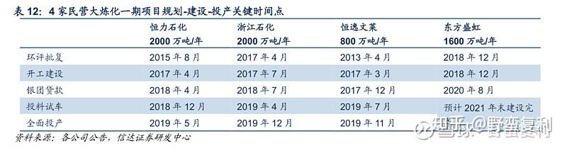 从项目立项开始,和当地政府洽谈投资事宜,等待环保部门的批复,开工建设到全面投产。以恒力公司为例,恒力公司的2000万吨一体化炼化项目一期从2017年4月开工建设,到2019年3月24日投产,半个月后全面达产。24个月就完成了开工到全面达产的速度,创造了世界炼化项目中最快的速度。而几乎同期开始建设的浙石化一期,从开工到生产历时了30个月;盛虹的大炼化项目预计用时36个月,恒逸的文莱PMB项目由于海外投资,更是历时了近8年才全面投产。
