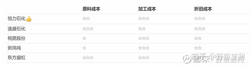 ,桐昆等,这方面大家的差距不是很大。不过在同等工艺下,是否有上下游的产业链支持,产业园规模优势,设施优势,管理优势,都会稍逊于PTA的头部玩家。
