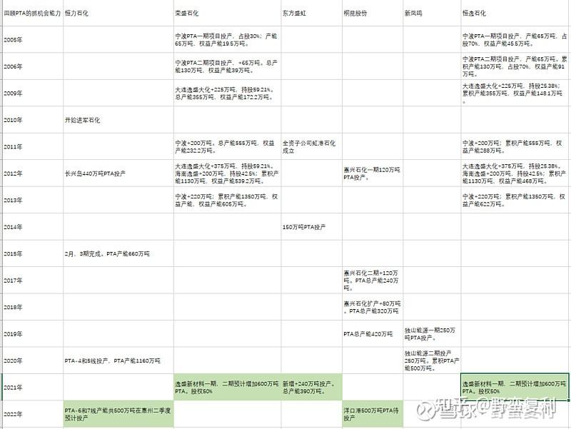 :基本是较晚起家的化纤公司,近年由于长丝产能的疯狂投放,导致PTA配套产能的释放。