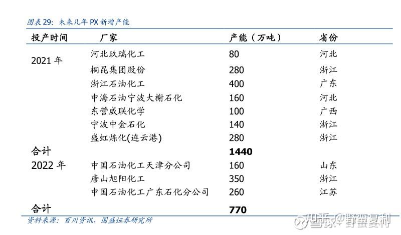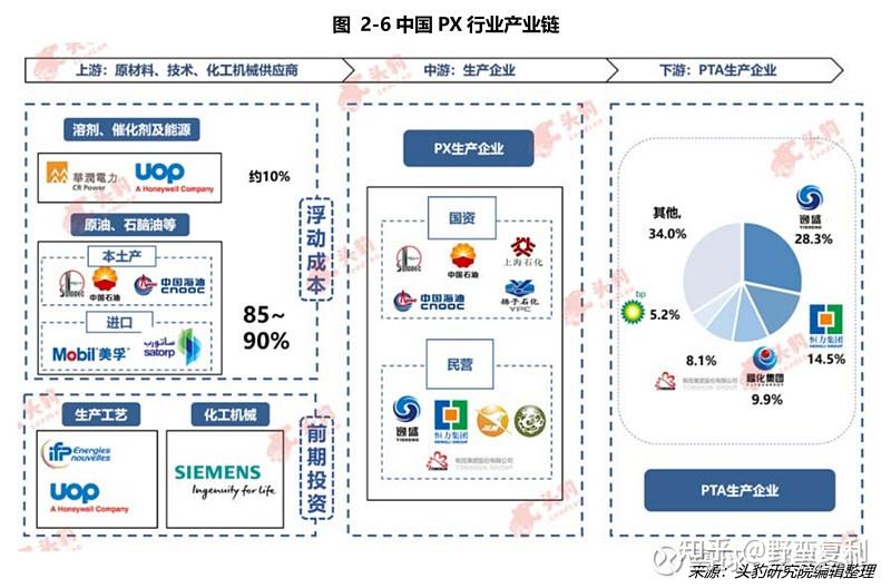 等。得益于国资背景,“三桶油”下属子公司在原材料和技术引进方面具备天然优势,进入市场较早、发展历程较长,占据 PX 市场主要份额。受制于历史的局限性,此类企业在 PX 生产规模方面较小,主要满足自身化纤生产需求,其商品化程度较低,发展较为缓慢。