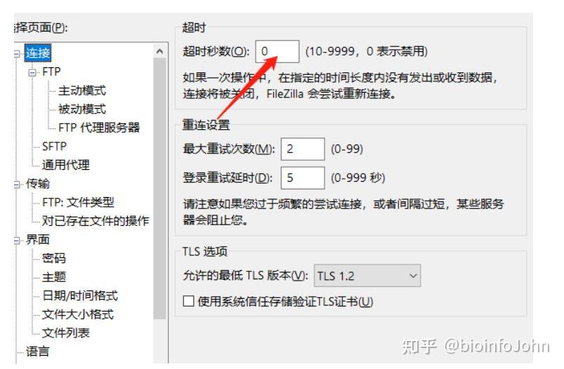 Step 7: 在 FileZilla 中禁用断开连接超时