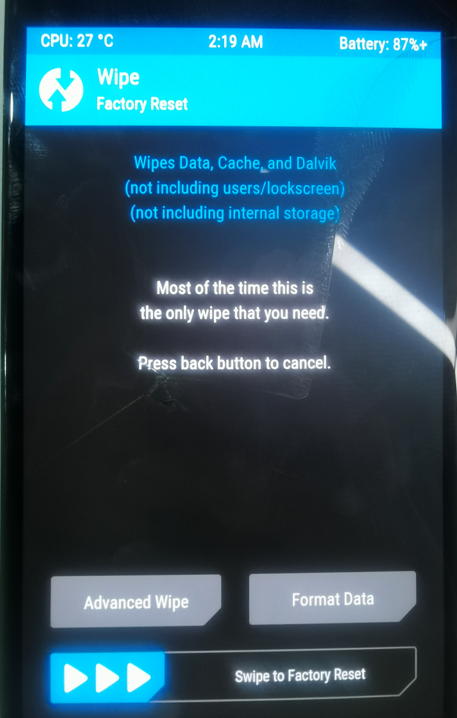 进入recovery模式(小米手机是长按电源键+音量加,我用的Nexus6是长按电源键+音量减,进入fastboot模式后按音量键选择模式,电源键确定)