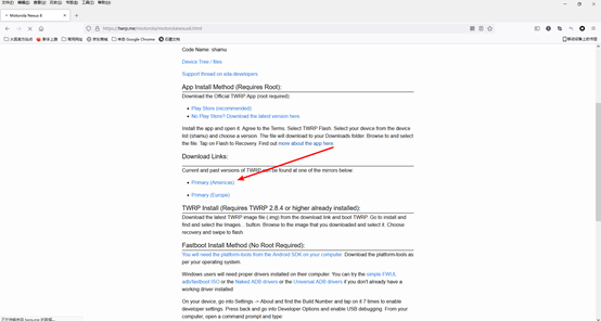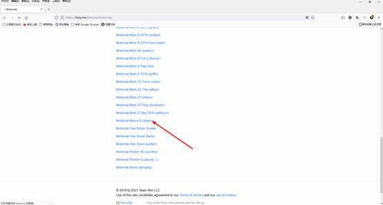 首先我在TWRP下载了NEXUS6对应的recovery,NEXUS一般分类在谷歌或者摩托罗拉中。