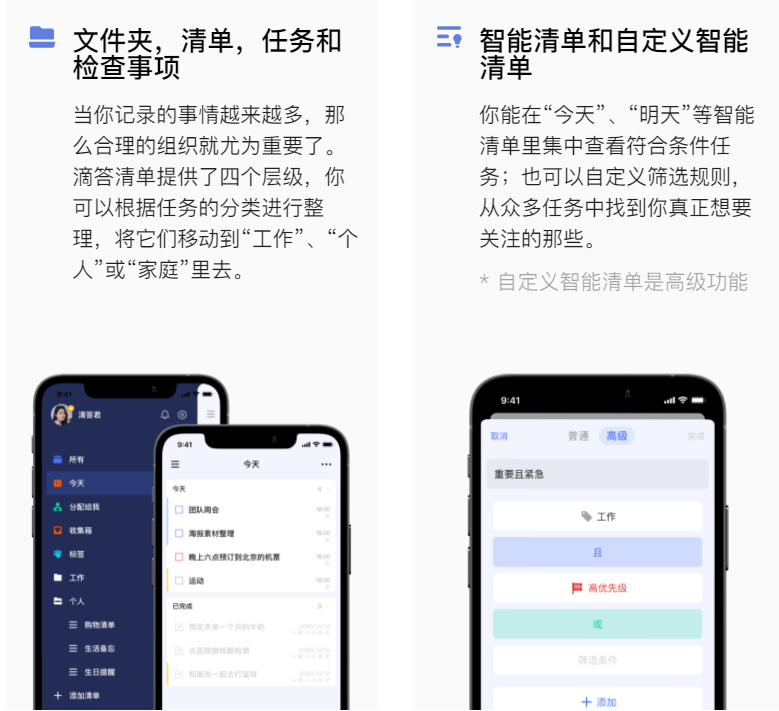 - 使用文件夹功能对清单、任务进行分层管理,实现工作与生活的平衡
