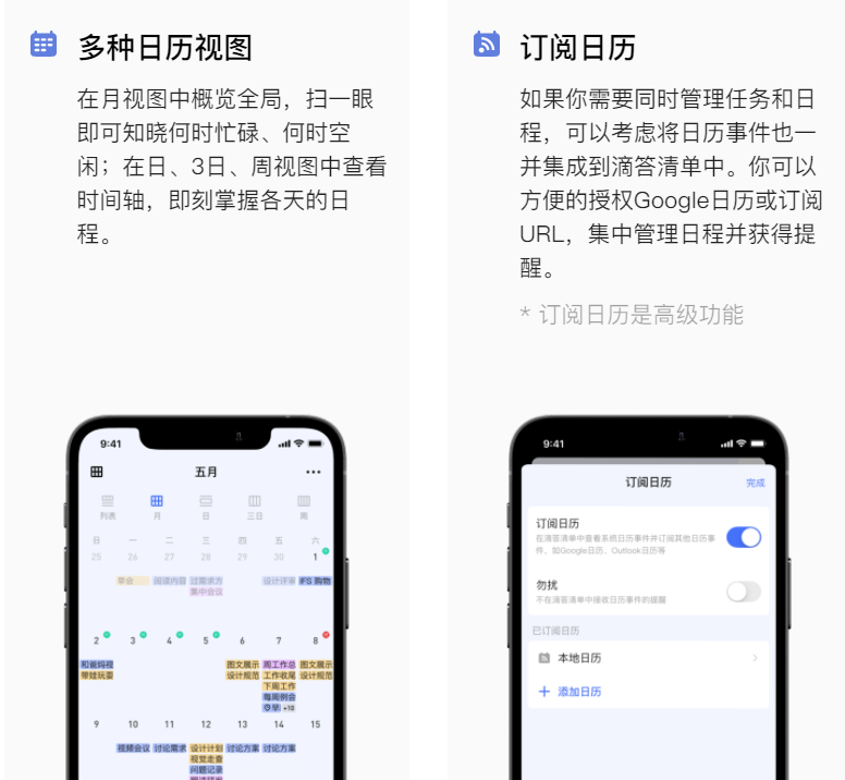 - 日程视图、日历订阅、共享清单,更高效地日程管理