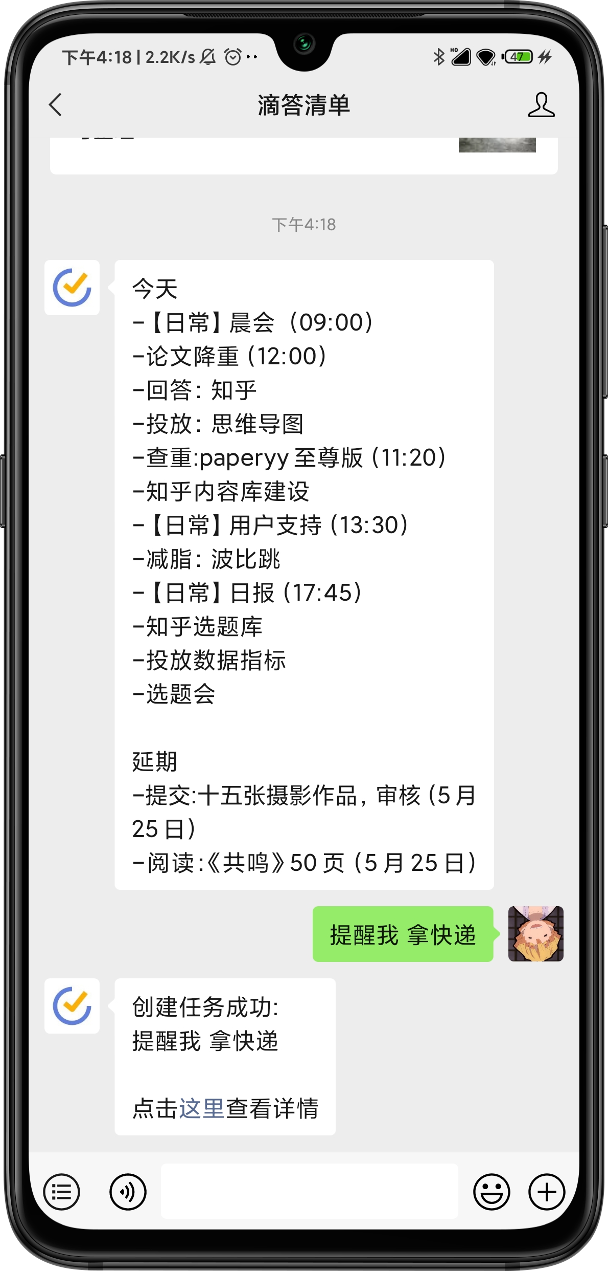 - 滴答清单:微信生态内建立待办的入口,发个消息便能创建待办,很方便