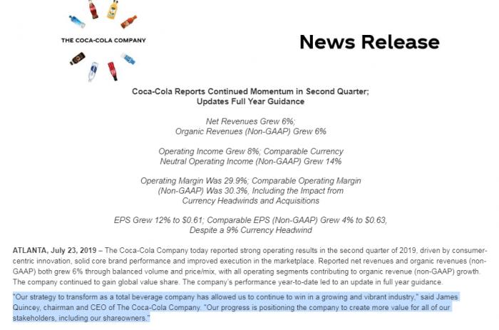 之所以可口可乐股价表现如此强势,主要在于公司二季度突出的财务表现,对此富途证券将其总结为三个“超预期”。
