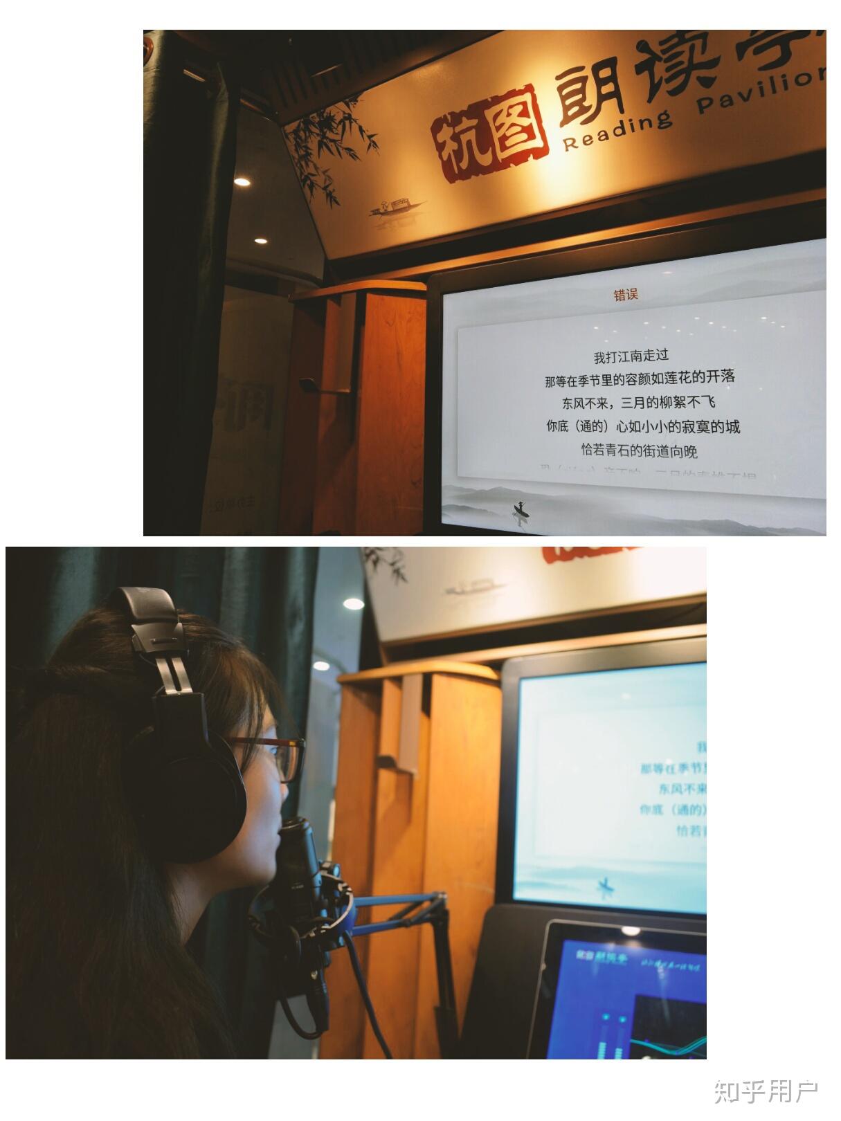 在杭高朗读亭温馨的灯光下,用声音诠释动人的情绪。(暂时偷一张杭图的照片,一模一样的嗷)