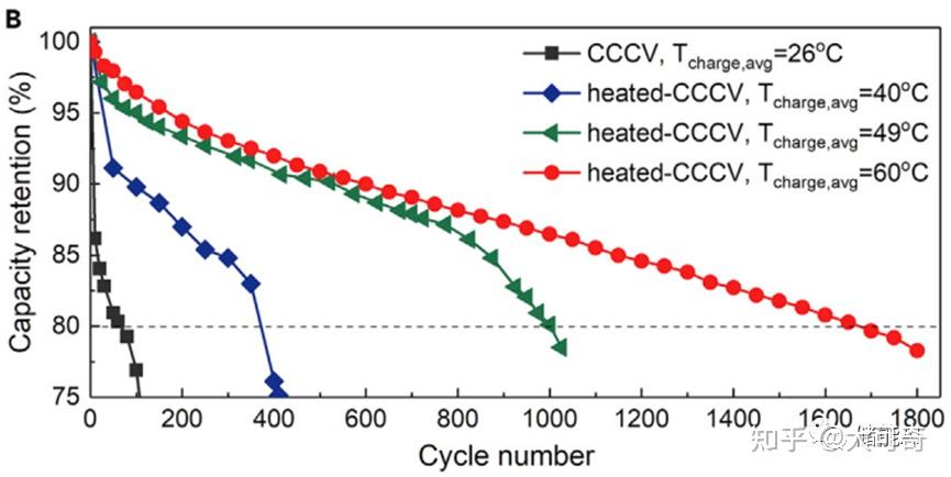 - 较高的充电温度消除了析锂问题,从而提高了电池寿命