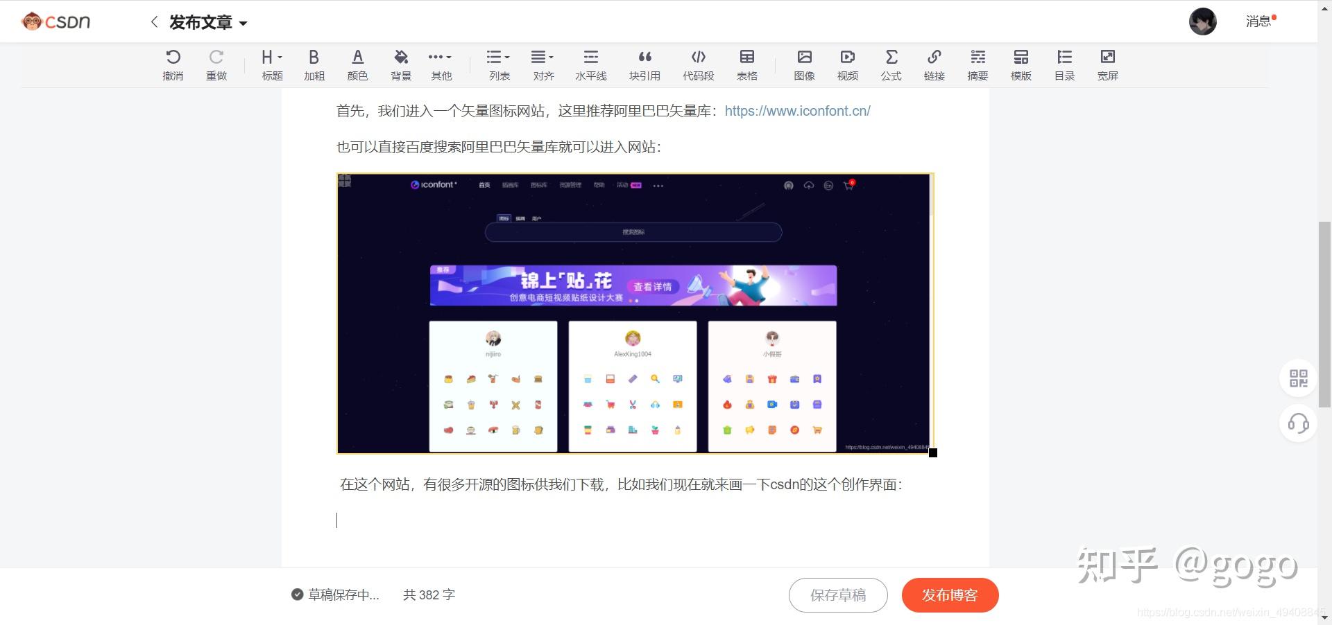 在这个网站,有很多开源的图标供我们下载,比如我们现在就来画一下csdn的这个创作界面: