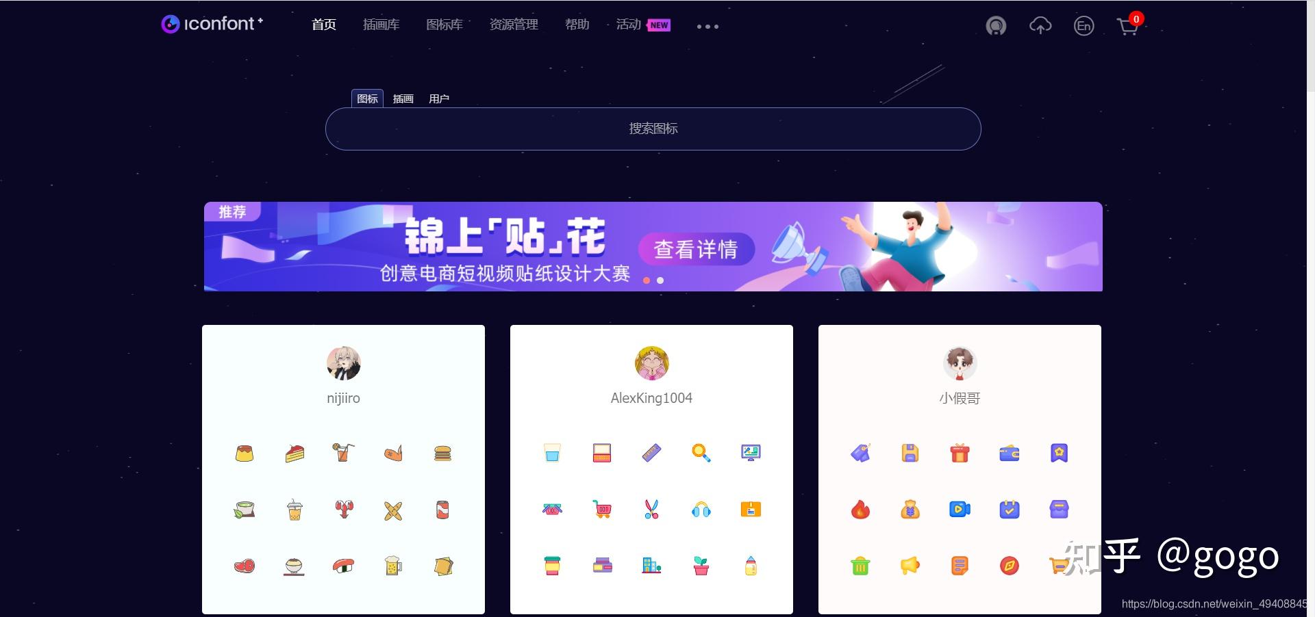 首先,我们进入一个矢量图标网站,这里推荐阿里巴巴矢量库: iconfont-阿里巴巴矢量图标库