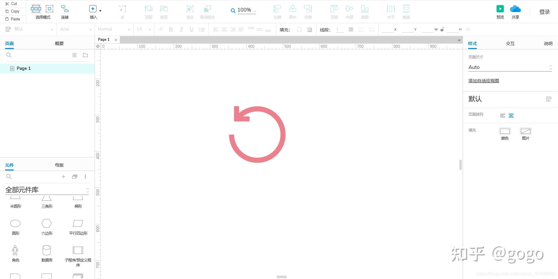 这个时候,“撤销”图标真正成为了你可以操作的元件,跟你元件库里的矩形一样,我们可以变换它的样式,比如我们可以把它填充色变为粉色: