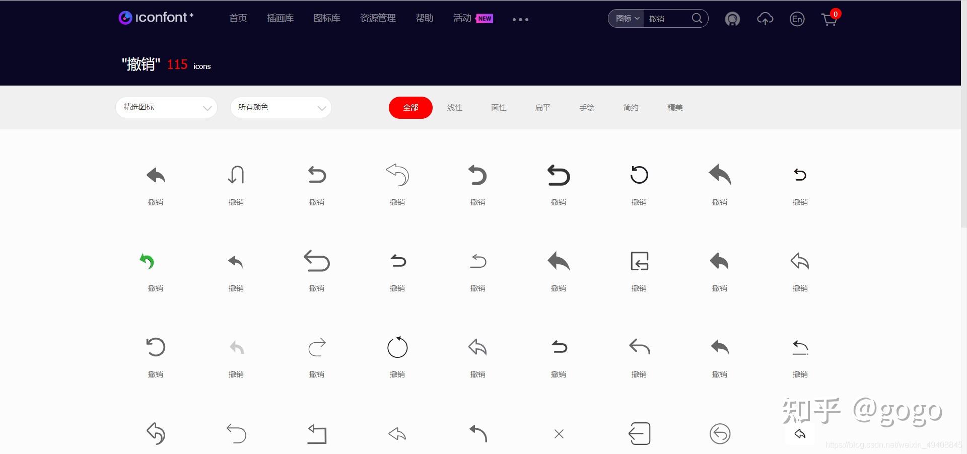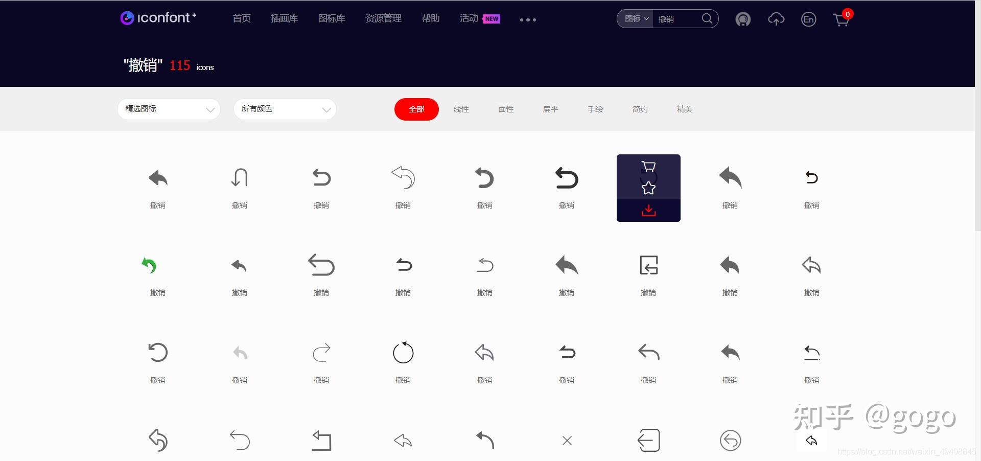 网站就会提供一系列跟“撤销”有关的图标供你选择,我们选择一个,点击下载按钮: