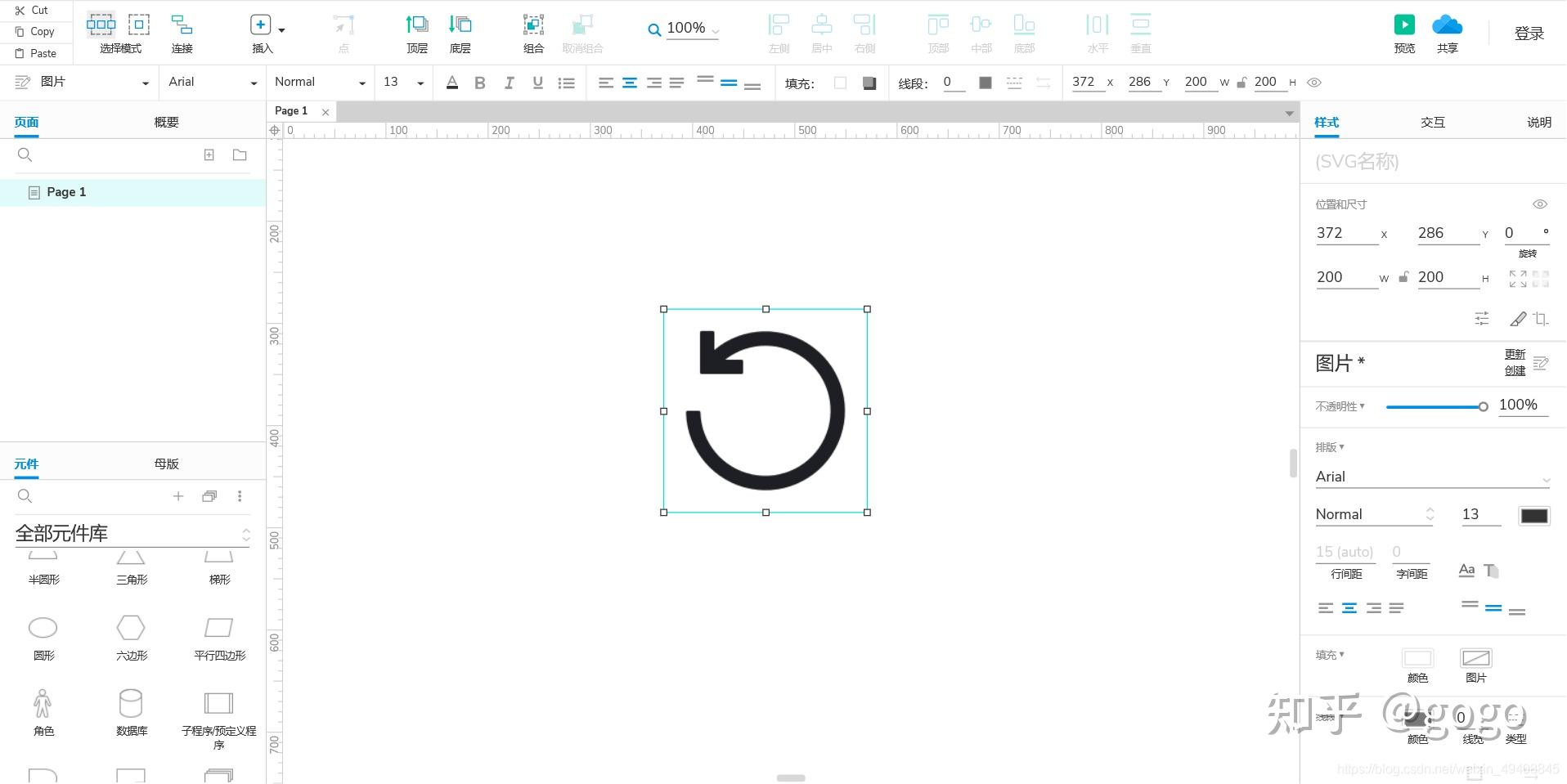 这个时候你就得到了一个“撤销”图标,你可以对它进行大小的编辑,但注意,这个时候的“撤销”图标还只是一个svg图片的格式,不能对它进行填充色等样式的改变。