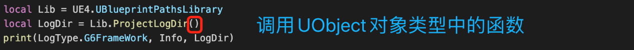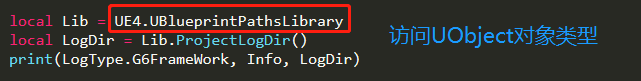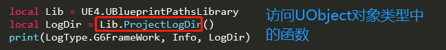 调用UE4.UBlueprintPathsLibrary.ProjectLogDir()来获取项目日志路径,那么在Lua中是如何根据一个UObject类型来调用成员函数的?
