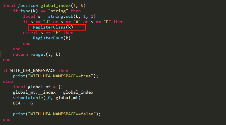 在Lua中访问UE4的类型,UnLua会先将C++类型数据注册到UnLua中,按照UnLua自定义的格式存储起来,对于UObject, Actor,Struct类型通过Global_RegisterClass,Enum枚举通过Global_RegisterEnum注册。