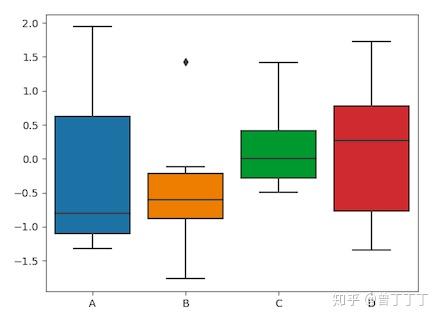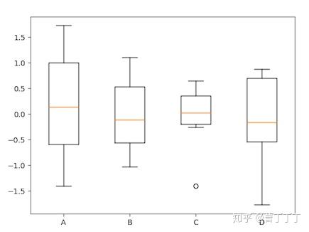 # 又称盒式图,由5个数值点组成:最大值max、最小值min、中位数median、上下四分位数Q3、Q1。