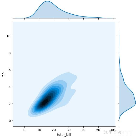 # sns.jointplot(x="total_bill",y="tip",data=tips,kind="kde")