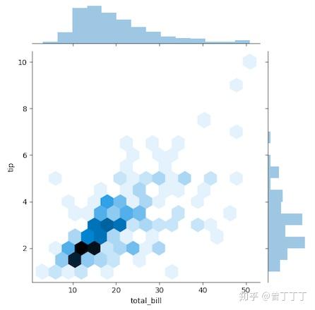# sns.jointplot(x="total_bill",y="tip",data=tips,kind="hex")