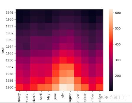 # 这里我们用Seaborn中的sns.heatmap(data)函数,seaborn自带了数据集flights,记录了1949年-1960年期间,每个月的航班乘客数量。