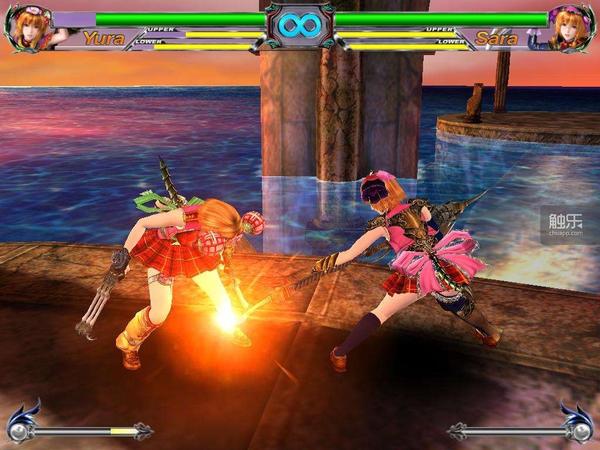 还有一种门槛略高的方式,就是将Honey展现的概念用游戏系统来实现,前文提过的《换装迷宫》就是此类。在《甜心战士》开创的美少女格斗题材中,下流却又令人梦寐以求的就是“边打边撕”,这种愿望想在游戏领域实现,尽在2002年的《欲望格斗》。这是一款真正还原了《甜心战士》中美少女们“爆衣裸殴”概念的格斗游戏,比起《死或生》那样不疼不痒的擦边,要真诚耿直得多,但也因此彻头彻尾成为了一款18+游戏,令人喜忧参半。