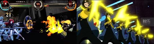 《骷髅少女》中的弹幕乱射(左)和《Re:甜心战士》中的杂兵乱射(右)