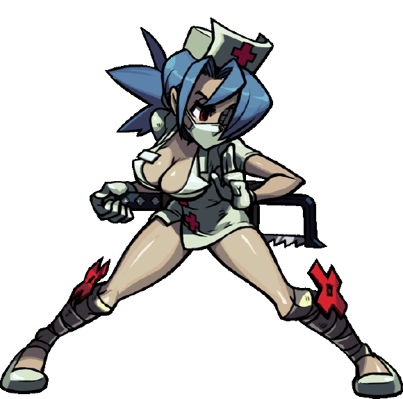 但对于《甜心战士》这样老资历的作品而言,最主要的存在感还是“灵魂传承”——表面看上去没有直接联系,但骨子里味道完全一样。这类情况除了前文提过的《最终幻想X-2》,还有小众评价极高的《骷髅女孩》。《骷髅女孩》的主要角色是各种猎奇风格的性感少女,每个角色还有多种皮肤变化,其中不乏直接致敬各路前辈的,比如同样是性感暴力代言人的哈利·奎因,或者是格斗届的R摇前辈不知火舞。