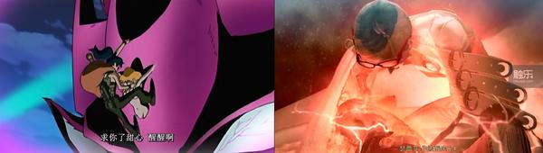 比如,《猎天使魔女》中的卢克与《Re:甜心战士》的草见,都是以凡人的身份来旁观女神大战,还都是记者身份,剧情中除了偶尔出来帮个关键的小忙,绝无传统的“男主”的地位。再有,剧情上两位变身女郎要面对的都是一个打算“创造新世界”的大尺寸最终Boss,并且都一度被困于Boss体内,再由死党女二号华丽狂野地赶来拯救。
