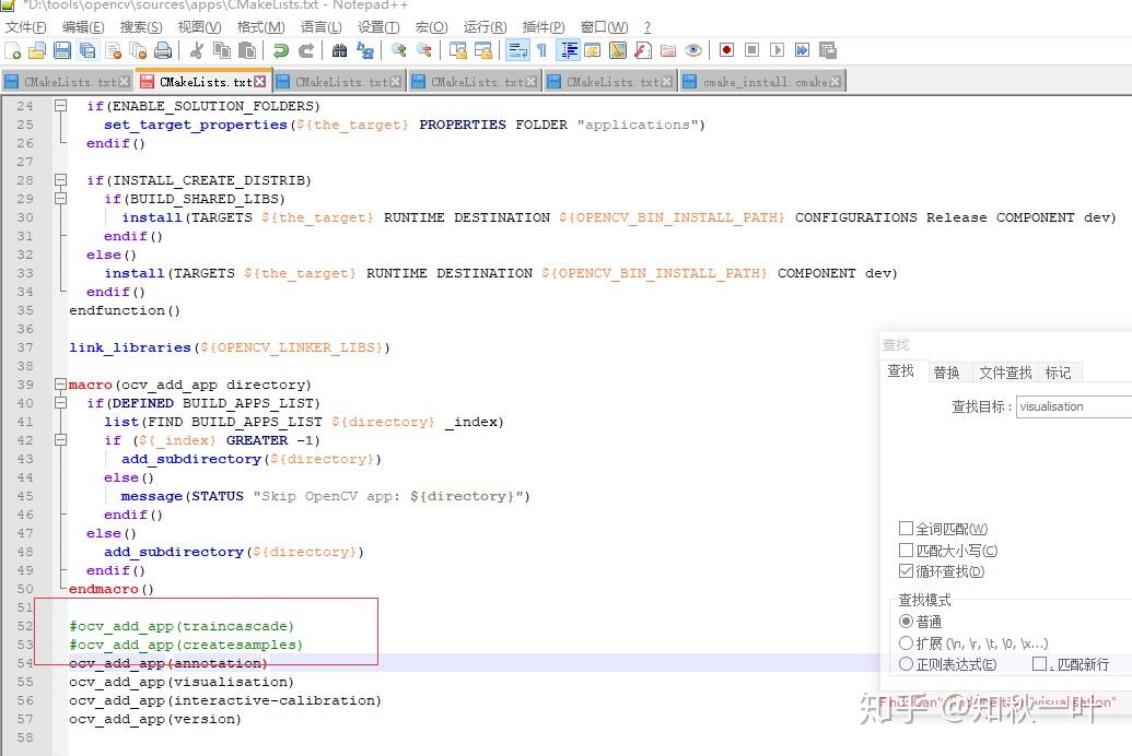 进入D:\tools\opencv\sources\apps目录下,打开CMakeLists.txt文件,这里有个坑,如图,默认这两个工具编译时被注释掉了,要把这两行注释去掉。