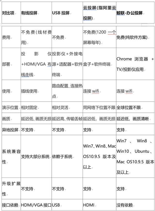 传统办公投屏跟鲸联-云办公投屏的区别: