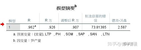 我们可以从这个表中看到该研究的基本信息:(1) 输入的变量栏显示该研究纳入的自变量包括LTP、PH、SOM、SAP、SAN和LTN;(2) 方法栏显示纳入方法为输入(区别于逐步回归分析);(3) 该回归模型是模型1。