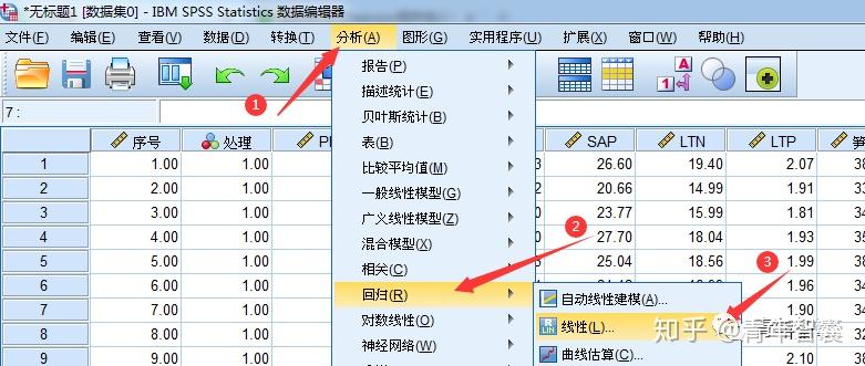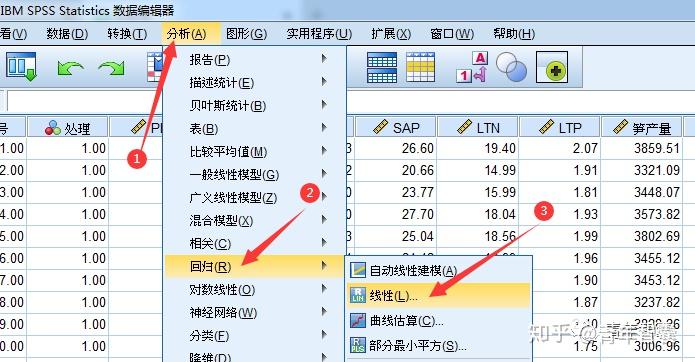 1. 点击 分析 → 回归 → 线性。