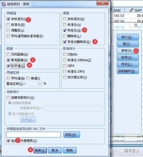 (3)首先我们看各自变量在模型中的显著性检验结果。当P>0.05时,该自变量在本模型中没有统计学意义,应当在回归模型中删除相应变量;当P<0.05时该变量在模型中具有统计学意义,应当保留。