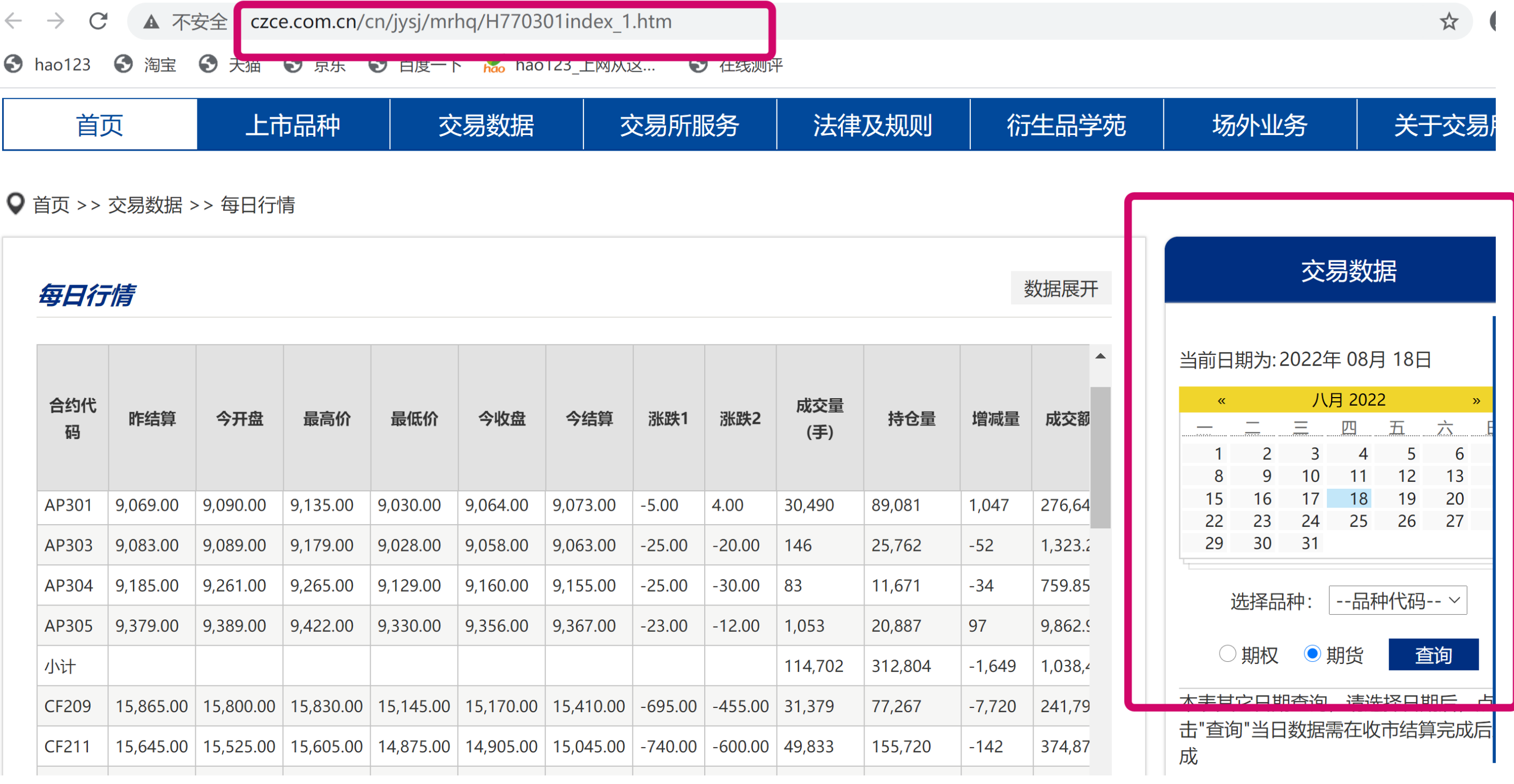 url1 = "http://www.czce.com.cn/cn/DFSStaticFiles/Future/2022/"+date+"/FutureDataDaily.htm"
